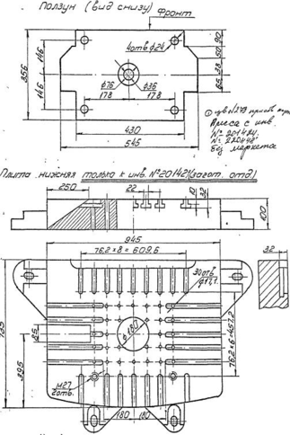 Рис.3.7. Нижняя плита и ползун пресса ЗИЛ 80.