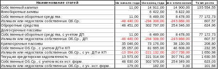 Оценка финансовой устойчивости предполагает расчёт величины собственных оборотных средств.