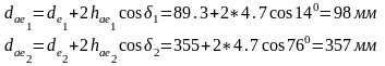 7. Внешний диаметр вершин зубьев: