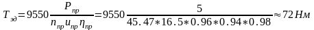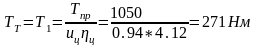 - Момент на быстроходном валу редуктора