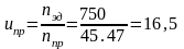 Требуемая частота вращения двигателя: