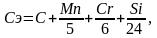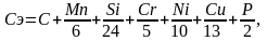 О свариваемости стали известного химического состава судят по эквивалентному содержанию углерода. Для этого каждый легирующий элемент оценивают с точки зрения его влияния на твёрдость (закаливаемость) стали по сравнению с влиянием углерода. Эквивалентное содержание углерода, %, может быть определено из выражения: