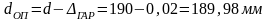Тогда, D = 1,680*2+0 = 3,36 мм