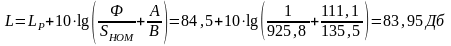 Ф – фактор направленности, характеризующий неравномерность излучения звука источником по направлениям. В нашем случае Ф = 1, SПОВ – площадь участка. В нашем случае SПОВ = 925,8 м2.