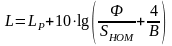 Расчетная формула для определения уровня шума, если источник шума находится в помещении, будет иметь вид: