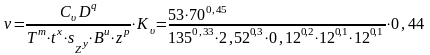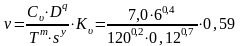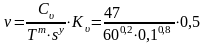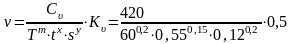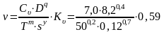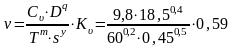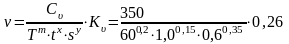 Скорость резания v, м/мин, рассчитывается по эмпирической формуле