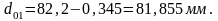внутренний диаметр охватываемой детали: d0 = 82,2 мм.