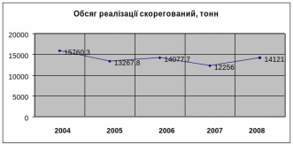 | Обсяг реалізації, тонн | 15760,3 | 13267,8 | 14077,7 | 12256 |