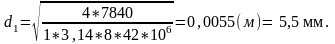 где d1 – диаметр впадин резьбы болта;