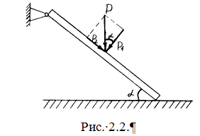 Каждая направляющая состоит из двух уголковых профилей соединенных между собой. Под действием массы колеса, направляющая воспринимает силу Р1, которая раскладывается на составляющие Р1 и Р2 (Рис 2.2.).