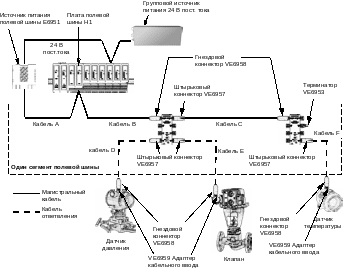 На каждом сегменте полевой шины может быть до 16 устройств (датчиков, клапанов и др.