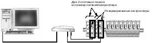 На рисунке 5.3 показан резервированный контроллер, установленный на 2-слотовых несущих панелях.