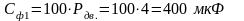 Емкость фильтра принимается из расчета 100 мкФ на 1 кВт мощности двигателя. Расчетная мощность фильтра определится: