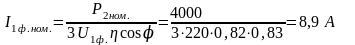 | Номинальный фазный ток, I1ном | А | 20,5 |