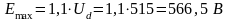 где Емакс – максимальное напряжение источника постоянного напряжения, В. В данном случае это напряжение в звене постоянного тока с учетом возможного превышения напряжения сети на 10%.