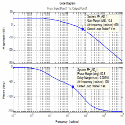 устойчива с запасом по фазе 59,8 и запасом по амплитуде 16,8 дБ.