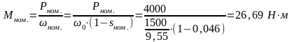 Момент статической нагрузки Мс=26,7 Н·м соответствует номинальному моменту двигателя, который определятся: