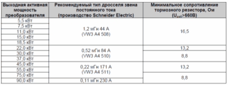 Дроссель звена постоянного тока необходим для снижения пульсаций выходного тока и уменьшения гармоник тока, потребляемого из сети. Кроме того, наличие дросселя звена постоянного тока позволяет увеличить ресурс силовых конденсаторов звена постоянного тока, а, следовательно, и ресурс преобразователя в целом. Коэффициент мощности преобразователя нормируется только при использовании дросселя звена постоянного тока.