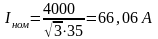 Определяем номинальный ток Iном ,А, на стороне 35 кВ по формуле