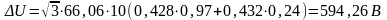 Сопротивления линии R0=0,428 Ом/км, X0=0,432 Ом/км [8, с. 432, таб. 7.38]