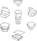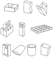 На рисунке 2.2 изображены коробки, классифицируемые по каталогу ECMA, как категория F – коробки особой формы и специальной конструкции. Так как коробка с трапецеидальным основанием входит в категорию F и форма рассматриваемого образца на рис. 2.1 достаточно интересна, то можно отнести её к категории F.