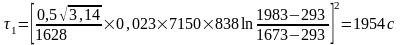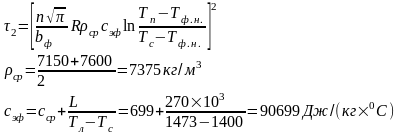 Расчет времени охлаждения отливки от температуры ликвидуса до температуры солидуса: