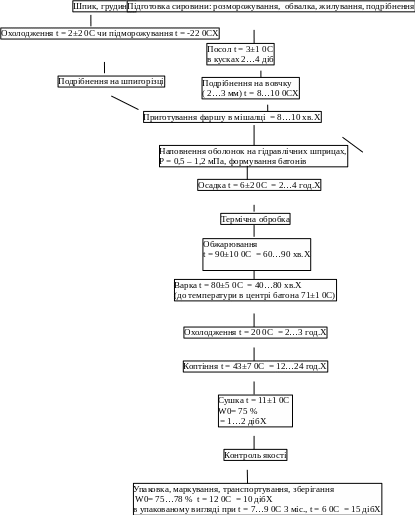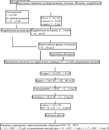 Технологічні схеми виробництва ковбас за прийнятим асортиментом надано нижче на рисунках 3.1 – 3.3.