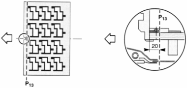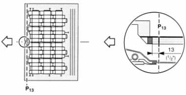 При позиционировании разверток на листе учитываются необходимые допуски на захват валами печатной машины, по 10 мм с каждой стороны, 15 мм на клапан в «голове» листа, 10 мм на «хвост» листа. Следующие рисунки демонстрируют технологически необходимый клапан под захват листа в штанцевальном оборудовании, который составляет 13 мм.