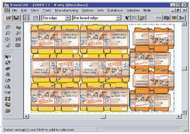 ArtiosCAD Layout предназначен для клонирования готового раскроя и создания монтажа для изготовления высекального инструмента. С помощью мыши можно на одном печатном формате разместить несколько различных раскроев для максимально полного заполнения листа. В случае необходимости Layout вычисляет координаты позиций единичных раскроев на листе и формат самого листа. Layout автоматически учитывает тип картона или бумаги, сторону, направление бумажных волокон, направление движения. Раскрой автоматически позиционируется на листе с учетом параметров материала.