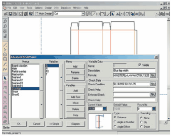 При создании корпоративной библиотеки стилей упаковки каждый стиль должен сопровождаться самодокументированием того, какие параметры могут использоваться и какие нет для конкретного стиля. Такое документирование обеспечивает специальный модуль Advanced StyleMaker. Использование созданного стиля становится доступным множеству других пользователей с разным уровнем профессиональной подготовки. Графический редактор позволяет задавать алгоритмы вычисления параметров по умолчанию. Например, размеры клапана для нанесения клея могут высчитываться автоматически на основании задания длины и ширины стороны коробки в виде рекомендованных минимальных и максимально возможных размеров клапана. Конструктор-дизайнер может принять предлагаемые программой размеры или задать свои.
