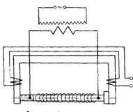 Следует отметить, что если трещины расположены параллельно магнитным силовым линиям, последние деформируются незначительно и, следовательно, трещины в таких случаях мало выделяются. Поэтому более эффективным является комбинированный способ обнаружения дефектов (рис. 2), при котором создается продольно- поперечное или спиральное магнитное поле. Продольные силовые линии создаются электромагнитом постоянного тока, а поперечные — при подключении испытуемой детали к сети с большей силой тока (обычно подключением ее накоротко к зажимам вторичной обмотки трансформатора).