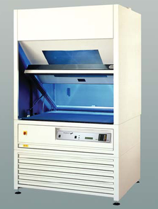 Стол контактно-копировальной рамы оснащен мощной вакуумной системой, которая обеспечивает плотный контакт между фотоформой и формной пластиной «слой к слою». Само экспонирование осуществляется высокоинтенсивным источником излучения, в то время как формный материал и монтаж находятся плотно прижатыми друг к другу [9].