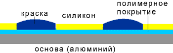 Пластина состоит из алюминиевой основы, на которую нанесен слой фотополимера, а на него - слой силикона. Толщина силикона — около 2 мкм. Силикон — кремнийорганический полимер — высокомолекулярное соединение, содержащее атомы кремния, углерода и других элементов. Он состоит из макромолекул на базе оксида кремния, имеющих линейную или циклическую форму [3, 7].