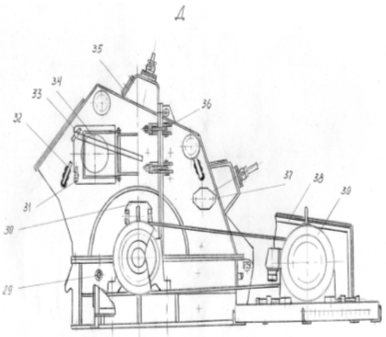 Дробилка состоит (см. рисунок 12) из сварного корпуса 13, ротора 16, двух реверсивных отражательных плит 5,9 и привода 39 (рисунок 14). Корпус дробилки разъёмный, состоит из станины 15 и двух каркасов – основного 4 и откидного 12 верхней части корпуса. Крепление основного каркаса к станине осуществляется болтами. Откидной каркас соединяется со станиной осями 14 и крепится к основному каркасу откидными болтами 36. Корпус дробилки в местах интенсивного соприкасания с дробимым материалом обкладывается футеровками, которые крепятся болтами. Секторы 3 и 10, расположенные над дисками ротора, по нижним торцам наплавляются сплавом Т-620. Для осмотра и обслуживания в корпусе имеются люки 30,34 35 и 37 (рисунок 14).