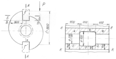 , равная 3920000 Н, действие которой может разрушить ротор по сечениям А-А, Б-Б, В-В. В сечении А-А ротор может быть разбит на две части вращением левой части относительно точки «К». Момент силы