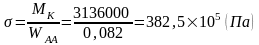 Максимальное напряжение в сечении А-А (по оси Л-Л)