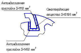 - площадь антиадгезионной прослойки, прилегающей к поверхности паза,