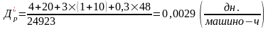 - простои в днях во всех видах технического обслуживания и ремонта, приходящихся на один час работы машины;