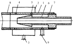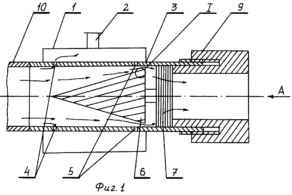 По патенту № 2181619 «АППАРАТ ДЛЯ МЕМБРАННОГО КОНЦЕНТРИРОВАНИЯ» к концу трубчатой мембраны крепится устройство, представляющее собой корпус с двумя кольцевыми щелями, с внешней стороны которого присоединен кожух. Внутри корпуса находится полый шток переменной конфигурации, имеющий переднюю часть в виде конуса, за торцевой поверхностью которого выполнена цилиндрическая проточка меньшего диаметра и резьба. Полость проточки соединяется со штуцером для отвода продукта с помощью канала в корпусе. Технический результат - увеличение производительности процесса