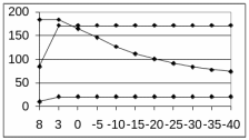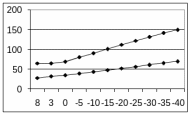 | tн | + 8 | + 3 | 0 | – 5 | – 10 | – 15 | – 20 | – 25 | – 30 | – 35 | – 40 |
