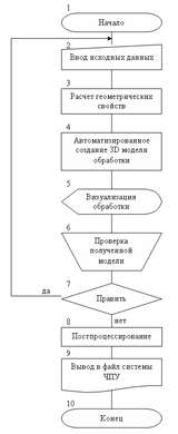 Результатом работы будет выдача управляющей программы для системы ЧПУ, карты наладки для данного оборудования или кода ошибки, если введенных данных не достаточно, либо они ошибочны и выполнить расчеты и преобразования по ним не возможно.