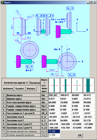 "Припуски" назначаются на сторону и максимум на 3 прохода вместе с подачей. Величина последнего припуска равна нулю. Если подача равна нулю, то припуск не учитывается. Величина припуска определяет расстояние, на которое отодвинут круг вдоль назначенной оси от окончательного расчетного положения.