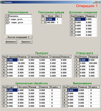 Внутри каждой операции существуют два типа движения шлифовального круга: со снятием материала и без снятия материала с заготовки (главное и вспомогательное). Как правило, все движения имеют циклический характер. Данный модуль предлагает пооперационное управление технологическими циклами.