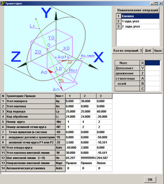Эта часть программного модуля использует данные, полученные после замеров кругов на станке. Количество кругов, их форма и расположение на оправке определяются шлифовщиком и технологом, исходя из их знаний и опыта. Шлифовщику необходимо замерить на каждом круге все соответствующие размеры и записать их в бланк замеров [4, 5, 6, 7, 8, 9, 10, 11, 12]. Все замеры шлифовщик должен производить вручную, связано это с индивидуальными особенностями каждого круга, которые невозможно учесть на предварительном этапе. После ввода всех необходимых параметров и нажатия кнопки "ОК", генерируется программа для создания 3D моделей кругов и оправки. Дальше наступает самая главная часть процесса разработки – создание траекторий перемещений рабочих органов станка (рисунок 15).