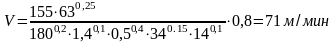Kмv = 0,8 – коэффициент, учитывающий влияние физико-механических свойств обрабатываемого материала.