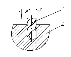 Сверлу 1 сообщается вращение со скоростью v и продольная подача S, в результате чего происходит обработка отверстия.