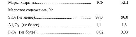В некоторых случаях требования потребителей и заводов-изготовителей могут изменяться. Ниже приведен химический состав кварцита по отраслевому стандарту (ОСТ 14-49—80), действующему с 01.01.81, а в табл. 1.9 — химический состав кварцита различных месторождений.