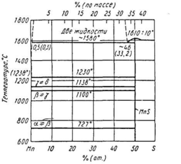 Между сульфидом и закисью марганца обеспечивается неограниченная смешиваемость с эвтектикой при 50% MnO и температурой плавления 1280○С [33].