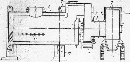 1 – бочка; 2 – П - образный газоход; 3,7,8 – люки для чистки;