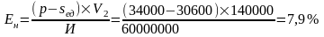 Эффективность капитальных вложений достигается при условии, если расчетный коэффициент эффективности Ен больше либо равен нормативному коэффициенту эффективности Ен. Так как в расчете отсутствует нормативный коэффициент эффективности, вычисляем только расчетный Ен.